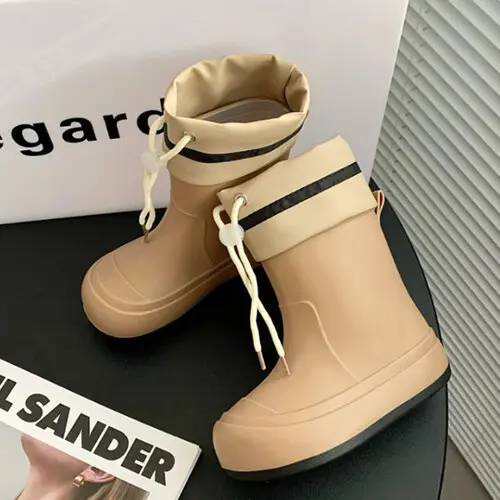 [여름 장마 준비템] 밴딩 매듭 여성 레인부츠 - 앵클,미들 워커 스타일, 중목 단목 물놀이 방수 신발