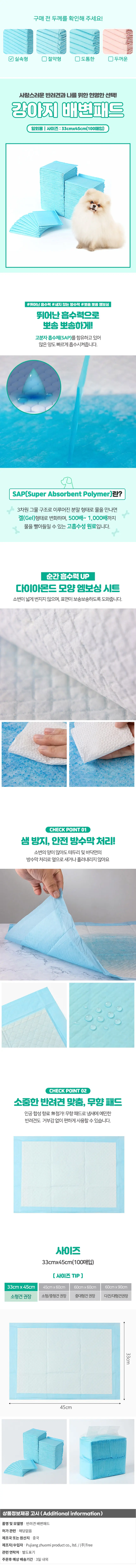 클린멍 강아지 배변패드 100매(실속형) (33x45cm)